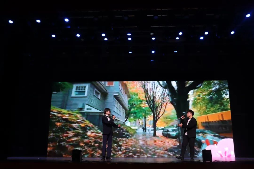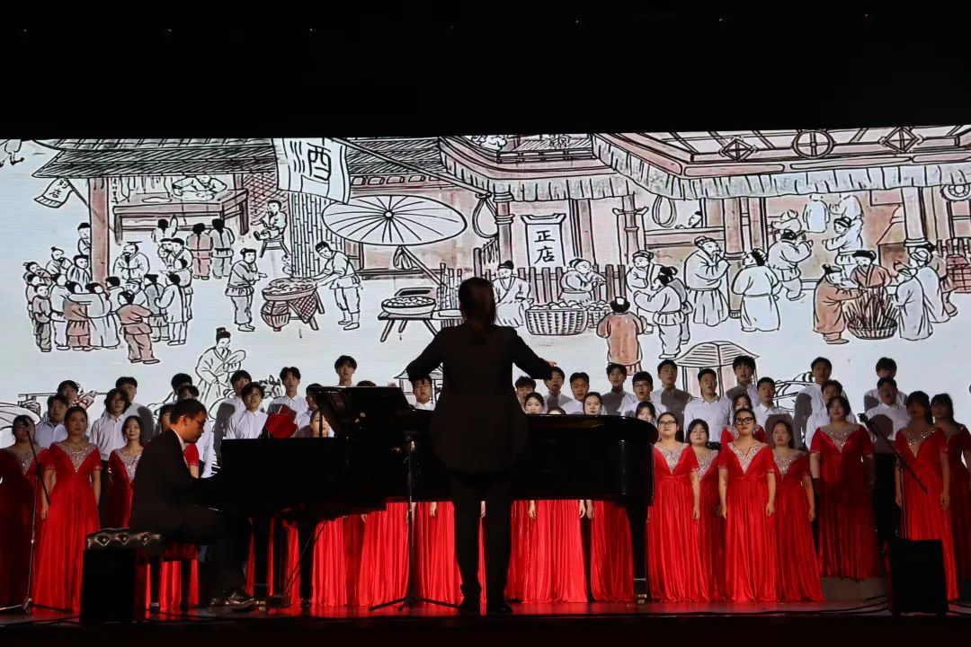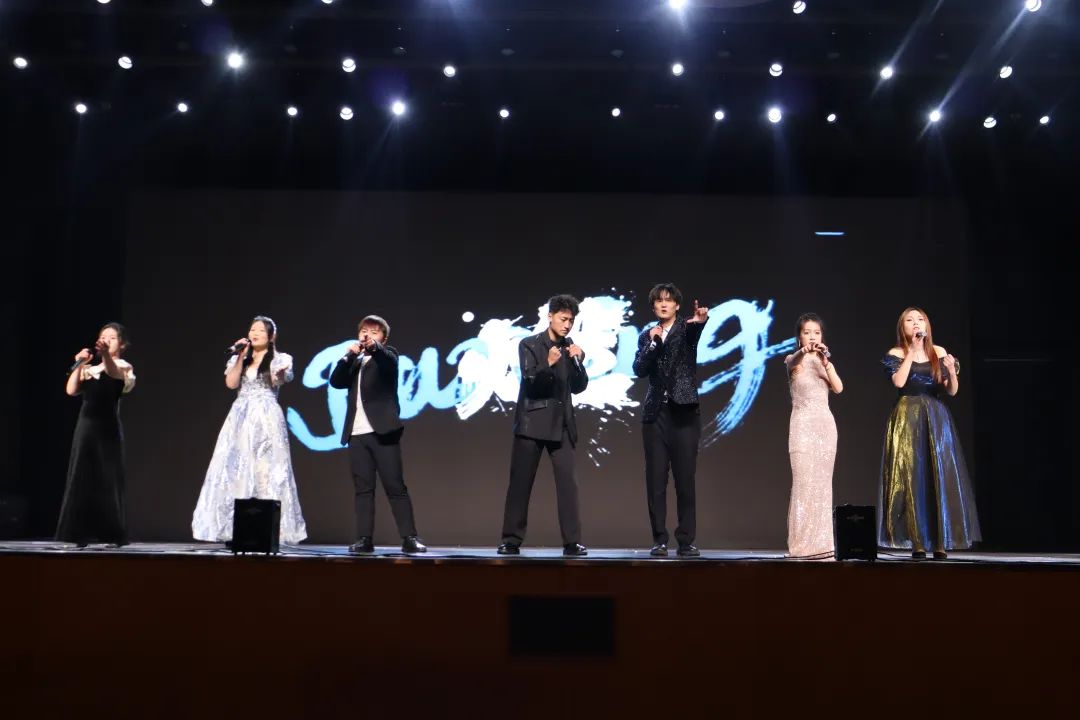 “心弦”筝乐团带来的古筝齐奏《战台风》和重奏《梦回临安》,一曲以力量感和层次感表现了码头工人英勇战台风的生动情景,一曲以悠扬婉转和灵活多样的演奏手法描绘出了在激烈不安的战争岁月中,勇士们迈着坚定的步伐勇往直前的场景。“心意”管乐团带来的单簧管重奏《匈牙利舞曲》,表现了匈牙利人民热情奔放的民族个性。“心扬”流行演唱团带来了串烧歌曲《星辰大海》《根本不是我对手》《亲密爱人》《千里之外》《外婆的澎湖湾》等,熟悉的旋律感染着台下观众,大家齐声唱和,令人感动。最后“心愿”合唱团带来了的混声合唱《大豆白米花生》和混声合唱《领航》,一个趣味横生,一个主题鲜明,为演出画下了圆满的句号。