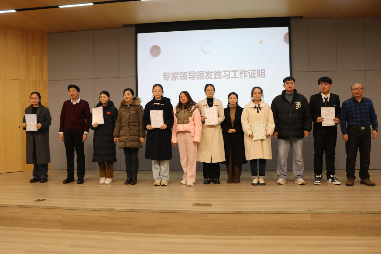 汪基德院长、许远理教授、刘丽红教授、陈帅先老师、史训英老师、谭雪梅老师为践习团队代表颁发践习工作证明,并合影留念。