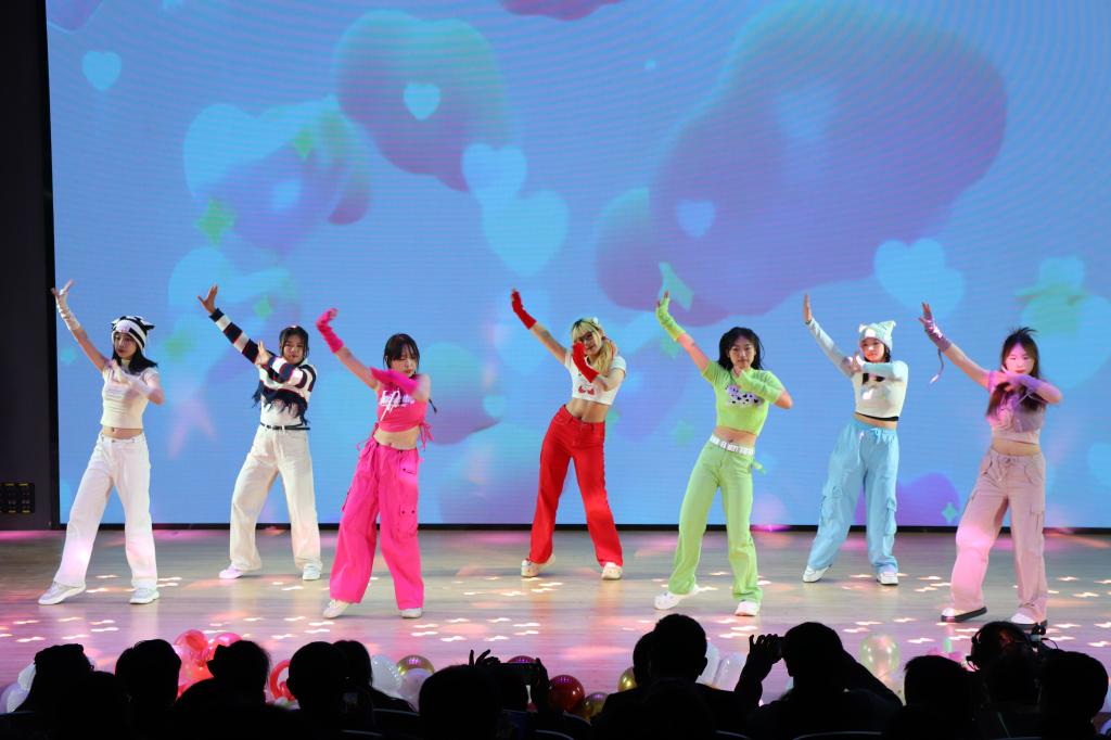 晚会之初,大屏播放《文学院2023年十大新闻》,展现了2023年文学院在学科、专业、人才培养等內涵建设方面取得全面而优异的成绩,在立德树人的道路上取得了丰硕成果。同时播放的还有晚会彩排幕后花絮微纪录片,一幕幕展示着本次晚会背后彩排人员的辛勤与快乐。在酷炫的灯光秀和街舞《SUPERSHY》的精彩展示后,晚会精彩开场。