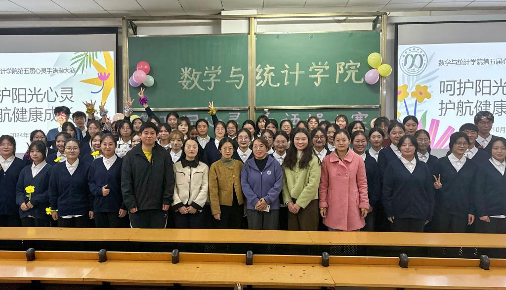 为贯彻落实习近平总书记关于加强学生心理健康教育工作的重要指示批示精神,进一步深化高校心理育人工作成效,提升大学生心理健康素养,数学与统计学院扎实开展以“呵护阳光心灵,护航健康成长”为主题的心理健康周宣传活动,相继开展了“心灵手语操”、“心理健康知识竞答”、“心灵派对”、“装扮校园”、“心灵趣味涂鸦”等活动。