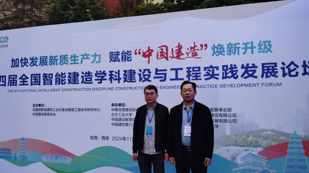 11月1至2日,第四届全国智能建造学科建设与工程实践发展论坛在西安举行。本论坛由住建部新型建筑工业化集成建造工程技术研究中心、中国建设教育协会主办,中建丝路建设投资公司、北方工业大学、中国建设教育协会校企合作专业委员会、中国建筑第六工程局有限公司等单位共同承办,来自全国各地高校、科研院所、建筑企业的专家、学者及代表400余人参加。我院教学副院长杨子泉副教授、智能建造教研室主任黄小林高级工程师出席论坛并参与了相关活动。