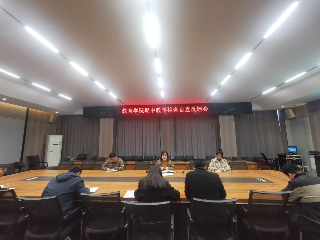 为进一步加强教学管理和教风学风建设,强化教学质量监控,及时发现和解决教学运行过程中存在的问题,促进教学质量稳步提升,根据学校《关于开展2024-2025学年第一学期期中教学检查的通知》,11月6日上午,教育学院组织开展了期中教学检查自查反馈会。教学副院长段海丹、教学干事刘勋达、教务员文颜琳及各教研室主任参加了会议。