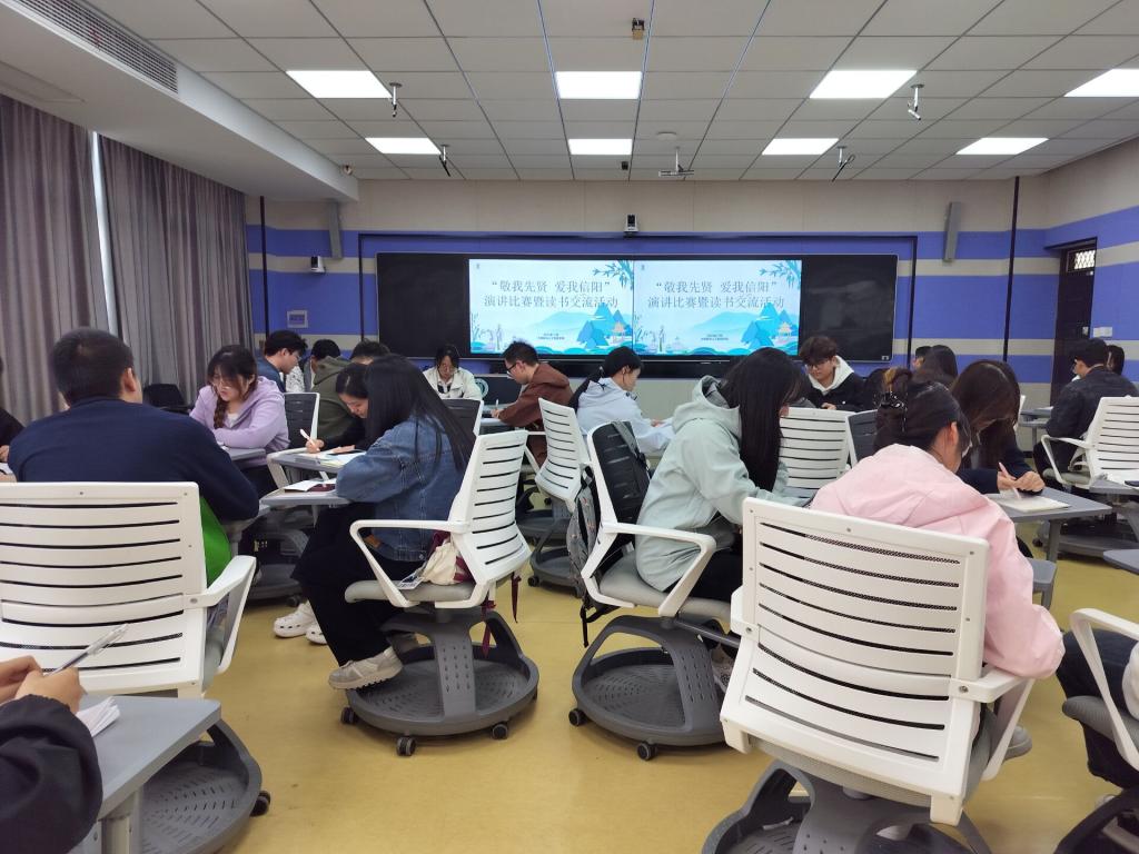 为深入贯彻党的二十届三中全会精神,唱响共产党好,社会主义好,改革开放好,伟大祖国好,各族人民好的时代主旋律。2024年11月5日下午,大数据与人工智能学院在人文楼101教室开展了“敬我先贤,爱我信阳”演讲比赛暨读书交流活动,全体入党积极分子热情参与,展现出对家乡信阳和革命先贤的深深敬意。