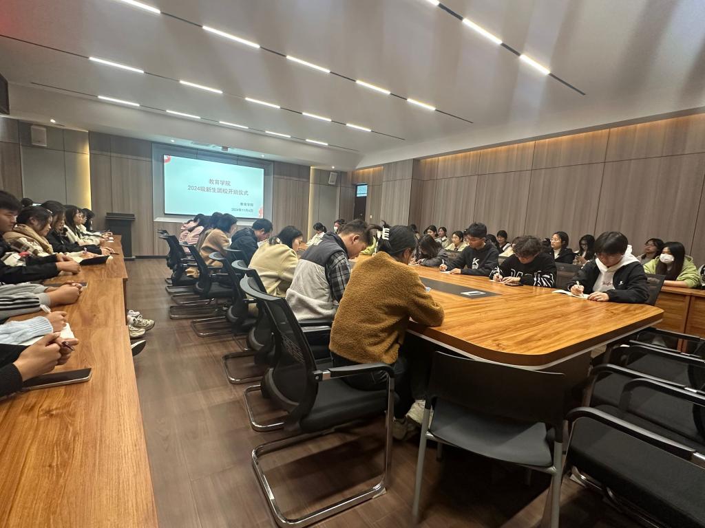 为深入学习习近平新时代中国特色社会主义思想和党的二十大精神、二十届三中全会精神,贯彻落实团十九大精神,增强广大团员的思想政治理论认知与政治素养水平,我院于11月6日在社科楼109召开了2024级新生团校开班仪式。党总支书记刘颖方、学工干事胡超出席开班仪式,团总支书记姜红、2024级新生辅导员、2024级各班团员参加了开班仪式。开班仪式由学工干事胡超主持。