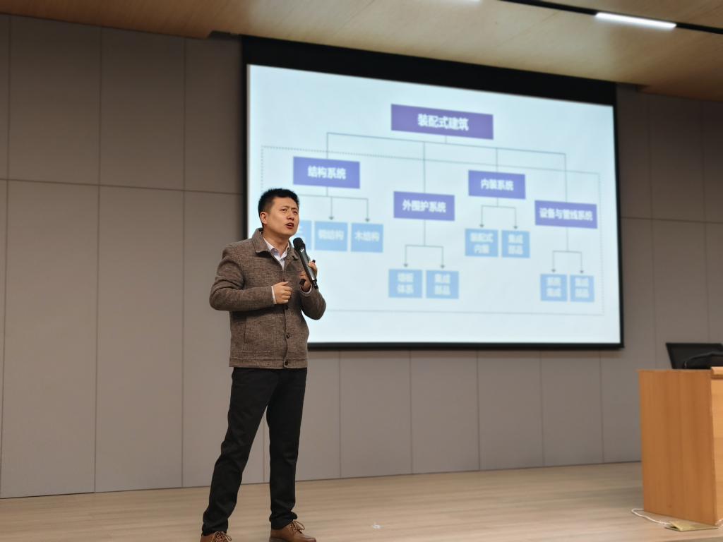 讲座中,曾成首先从“中国好房子”的标准出发,提出了以制造业的方式改造建筑业的理念,并详细解释了“装配式建筑”的概念及其重要性。随后,他从多个维度分析了当前传统室内装修存在的问题,阐述了采用装配式内装对于推动建筑行业转型升级的意义,并对国家关于装配式内装的各项政策进行了解读。通过分享公司在近年来实施的相关项目案例,曾总不仅展示了理论与实践相结合的成功经验,也激发了在场师生投身未来行业发展的热情。