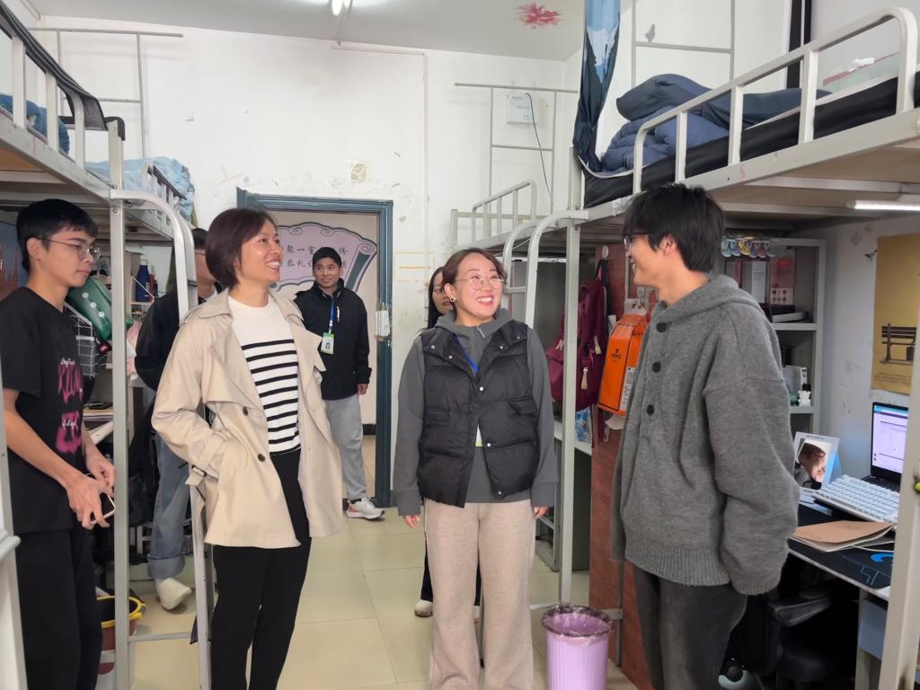 为增强学生宿舍安全卫生意识,营造舒适学习氛围。11月8日,数学与统计学院党总支书记高昌慧、学工干事田媛带领全体辅导员走访宿舍。