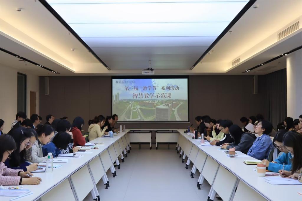 为了帮助青年教师更好地投入教学工作,提高教育教学质量,11月5日下午,我院于教一楼406会议室开展第三届“教学节”系列活动智慧教学示范课。文学院院长张凌江,示范教师曹艳贞、陈丽、许文雅以及部分青年教师参加此次活动。活动由秦静诗老师主持。