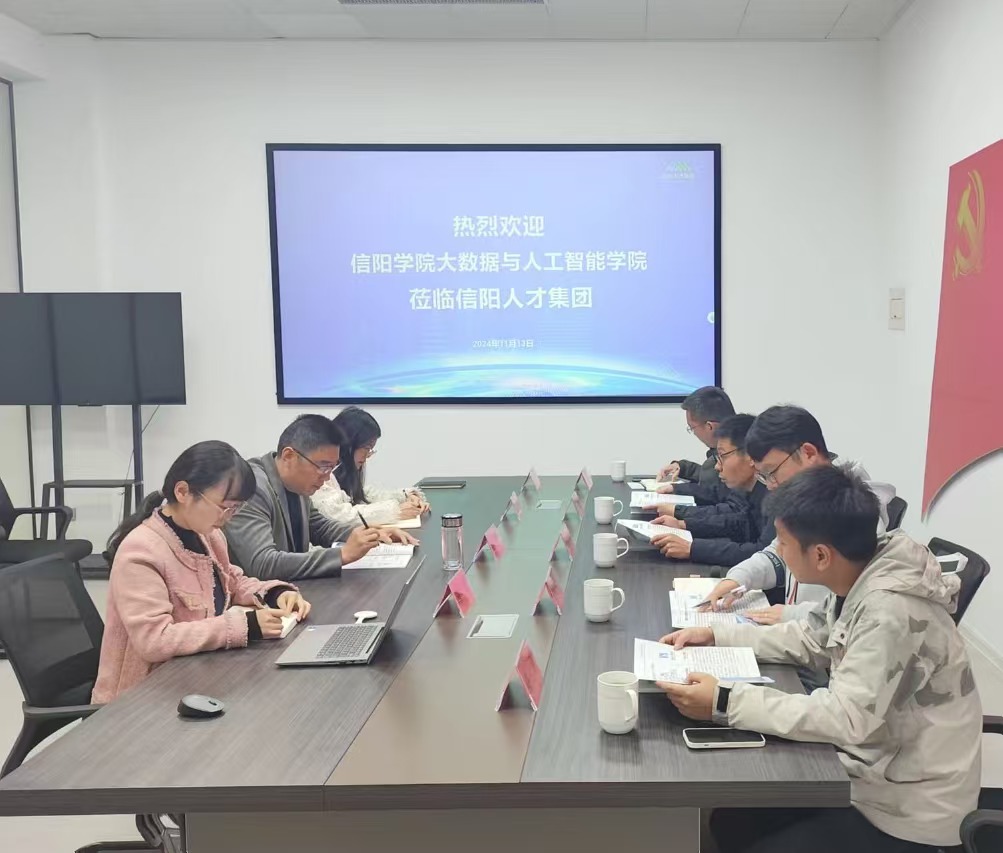 为贯彻落实学校访企拓岗专项行动的要求,拓展毕业生就业渠道,11月13日上午,大数据与人工智能学院党总支书记郭二军,辅导员黄礼祥、周川川、晏祥、刘明珠赴信阳市人才集团有限公司开展访企拓岗行动。信阳市人才集团有限公司副总经理李先东、人才招引事业部部长常莹莹、综合管理部部长陈娟接待了学院一行。