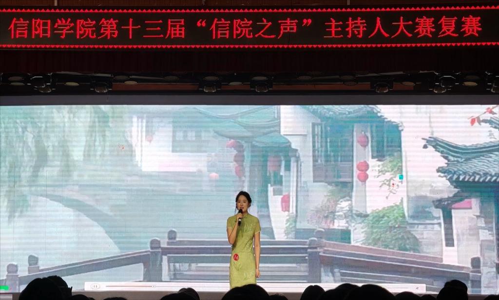 比赛分为自我介绍和模拟主持两个环节。社会科学学院杨晓莹的《一齐追逐我们的太“杨”》系列节目偶像篇,为我们讲述了偶像的力量,我们应当如何去追着光,成为光,发散光;商学院李芳卉从一个普通的篮球场说起,将独臂篮球运动员的故事娓娓道来,爱你所爱,不负热爱,这是一个难忘的《球场故事》;音乐学院杨洁洁的《不朽骄阳》,带我们了解信阳市新县大别山革命根据地,开启了一场红色之旅;外国语学院董景文的《遇见中国,豫见禹州》,带我们走进他的家乡,一起了解禹州的悠久历史、药文化和瓷器;大数据与人工智能学院的刘思麟身着青色旗袍,为我们讲述了源远流长的旗袍文化,从旗袍看《中华服饰之美》;社会科学学院刘可言的《交通言生活》,从交通讲到人生,启人深思;外国语学院的刘展滔带我们走进唐山,看见中国的美食和皮影文化,与我们共同《领略中华》;文学院的陈添添为我们讲述了《豫见河南特别节目:秋收》,大地的丰收,也是生活的希望,忙碌与喜悦并存。其他选手的表演同样精彩纷呈。