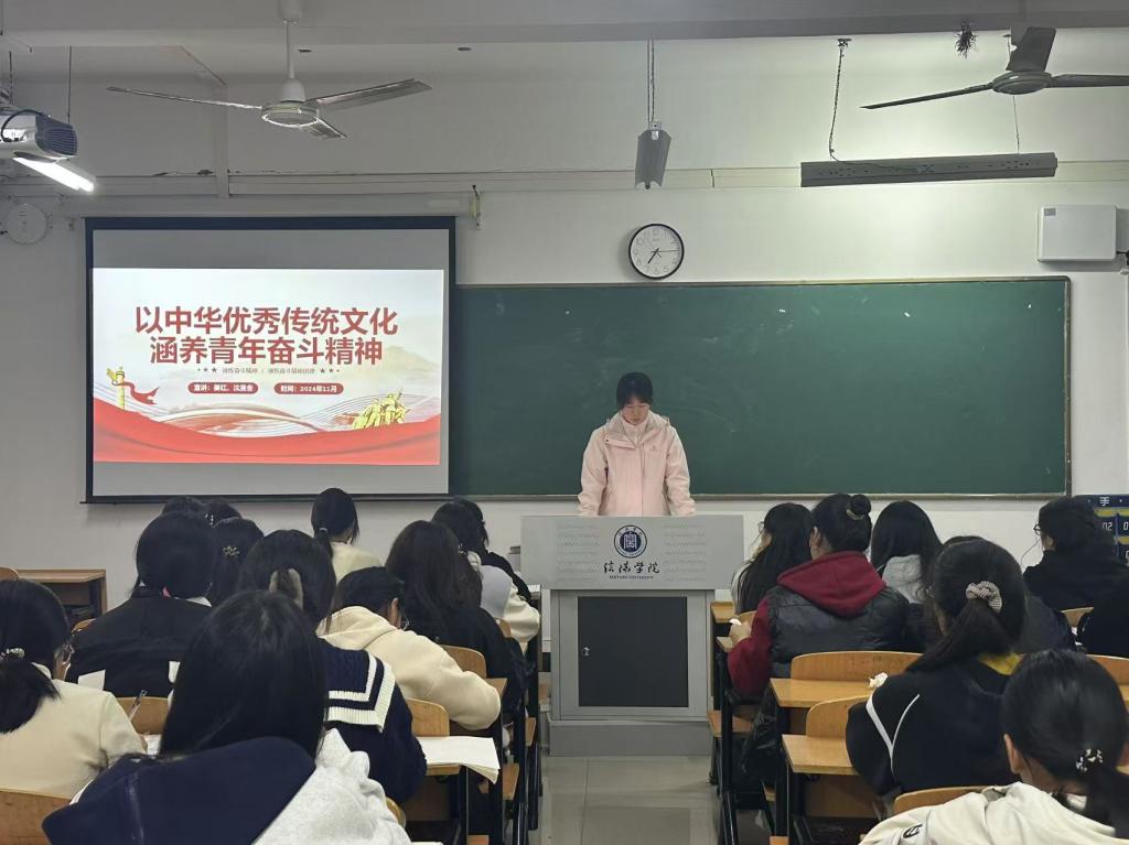11月13日,“以中华优秀传统文化涵养青年奋斗精神”主题团课在社科楼317开展。团总支副书记沈昱含同学从家国情怀、理想信念教育、以民为本思想、自强不息品格、改革创新精神五个方面所蕴含的中华传统文化展开阐述,号召同学们深入学习中华传统文化,以此丰富精神世界,培养自身奋斗精神。当今社会,青年正成为弘扬中华优秀传统文化的中流砥柱。当代青年应不断增强自身本领、提高个人素质、为国家发展贡献力量。