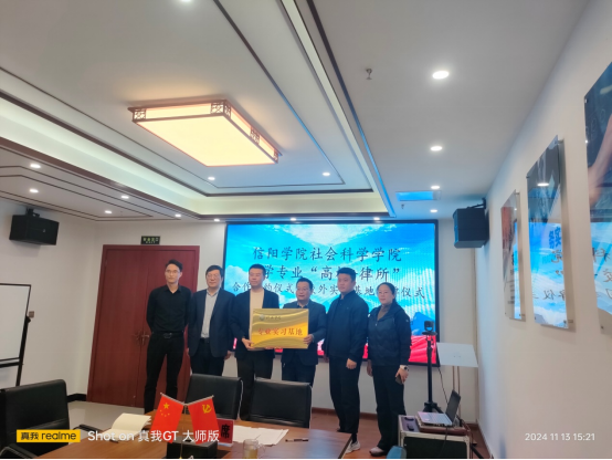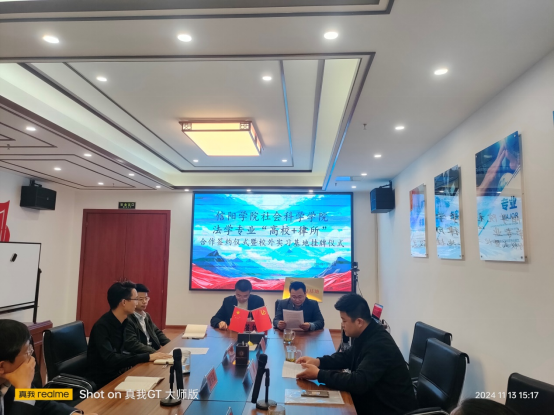 郝斌介绍了社会科学学院法学专业的学科发展、师资队伍建设、学生培养等情况。胡志国表示希望双方以此次建立教学实践基地为契机,进一步拓宽合作交流的深度和广度,在学生实习就业、理论研讨、实务培训、疑难案件论证、科研成果转化等领域深度合作,共同为法治建设做出应有的贡献。随后双方签署了法学专业学生实习基地协议并举行了授牌仪式。