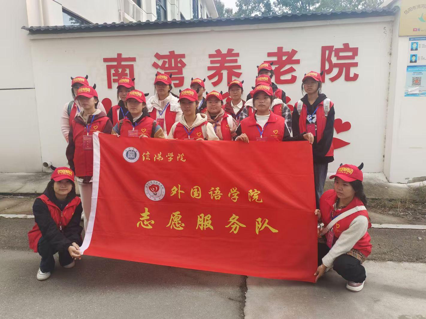 尊老敬老是中华民族的优秀传统。为深入学习贯彻习近平总书记关于老龄工作的指示,弘扬中华民族爱老敬老的传统美德,进一步倡导敬老、爱老、助老的新风尚,外国语学院志愿服务队于2024年11月9日上午前往信阳市南湾养老院,开展了以“爱心陪伴,温情传递”为主题的志愿服务活动。