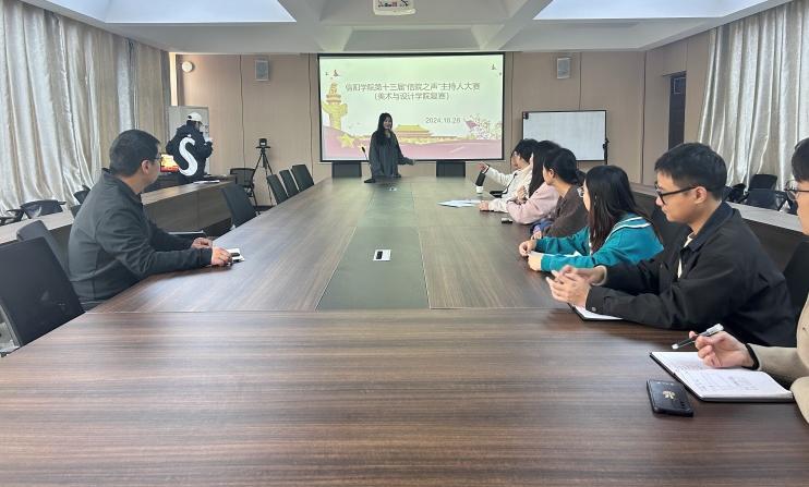 10月25日中午,美术与设计学院在艺术楼215举行第十三届“信院之声”主持人大赛。本次比赛由辅导员老师和学生会主席团担任评委,共有十名选手入围。