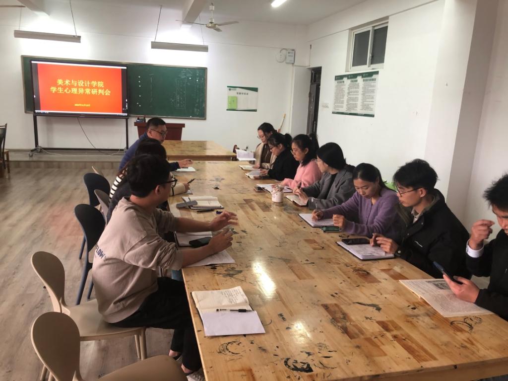 会议进行第二阶段,学校大学生心理健康辅导中心张晶晶、余俊文和李夏菲和全体辅导员召开了学生心理异常研判会。
