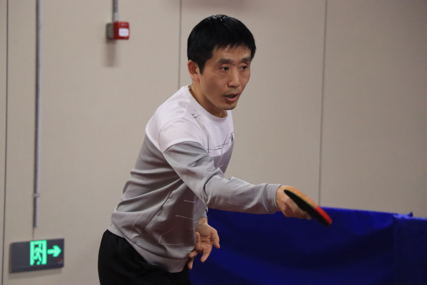 此次比赛中最令人瞩目的当属教工组的比赛,老师们从三尺讲台到运动赛场,暂时放下手中的粉笔和教案,阔步迈向球场,他们能在教学的岗位上诲人不倦,亦能在赛场上乘风破浪。团体赛上我院老师身形矫健,每一次精彩的接发球,每个瞬间都展现着团队间的协作能力。我院的李峰亮老师凭借自身过硬实力和精湛的球技在男子单打中脱颖而出。我们的女教师职工也不甘示弱,胡发萍老师与杨明辩老师也在赛场上大放光彩,挺进四强。