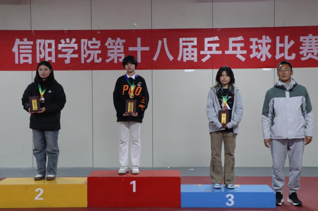 我院全体参赛选手积极备赛,团结协作,在团体赛中成功荣获教职工混合团体赛冠军(参赛选手:张凌江、李峰亮、陈俊、陈浩、王斌、杨明辩、胡发萍)、学生组女子团体冠军(司幸瑜、李映雪、谢龙龙、付振齐、张继诚、董浩然、刘柄钰、常嘉欣);在教职工组单打比赛中,李峰亮老师荣获男子组单打第二名、陈俊老师荣获男子组单打第六名、陈浩老师荣获男子组单打第八名、胡发萍老师荣获女子单打第三名、杨明辩老师荣获女子单打第四名;在学生组单打比赛中,司幸瑜荣获女子组单打第二名、李映雪荣获女子组单打第四名。