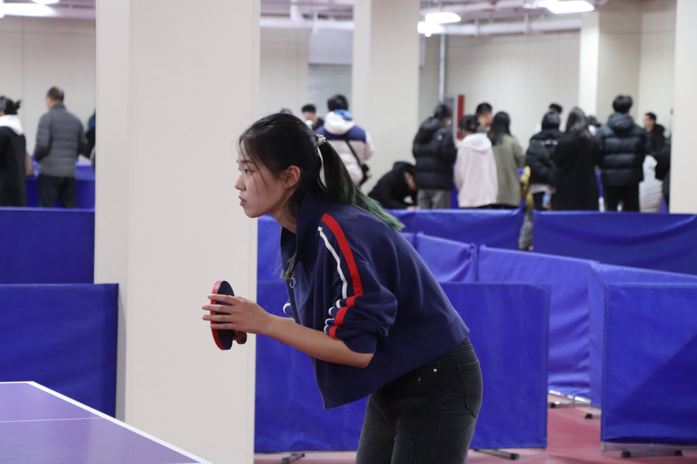 在学生组比赛中,我院参赛学生个个精神饱满、斗志昂扬,面对面前的对手,他们始终保持着认真拼搏的态度,一个个精准的角度,一道道精美的弧线,一拍完美的扣杀,无不显示着他们的实力与智慧。在学生组的比赛中,我院司幸瑜同学在比赛中充分展现她的精湛球技,正手弧璇、反手拧拉、台内搓球、远台进攻、扣球……精彩的球技伴随此起彼伏的加油声络绎不绝,她所展现的积极进取、奋力拼搏的精神感染了在场的每一人。