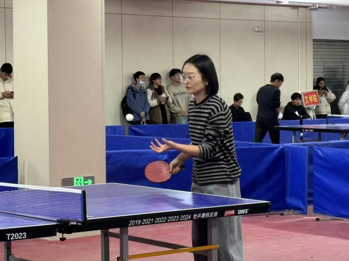 乒乓球赛中王薪然凭借精湛技艺与丰富经验过关斩将,独占鳌头,斩获教工组冠军,学院获教工组团体赛第七名;孔维奔、王天峰分别获学生组男子单打第四名和第六名,贾蕙菁获学生组女子单打第八名,学院获学生组男子团体第五名和女子团体第八名。