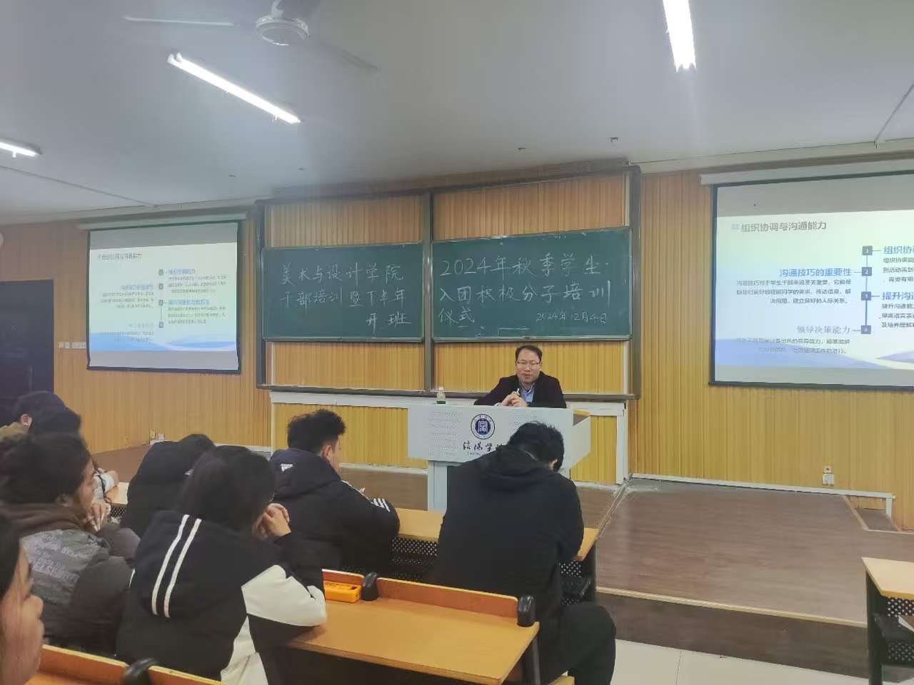 为深入学习贯彻习近平新时代中国特色社会主义思想、党的二十大精神、团十九大精神,增强我院青年学生干部、入团积极分子的思想政治理论水平和业务工作能力,12月4日中午,美术与设计学院2024年秋季学生干部培训暨下半年入团积极分子培训开班仪式在艺术楼101举行。学院党总支书记郑山峰、团总支书记邓先强以及200余名学生干部和入团积极分子参加了此次大会。