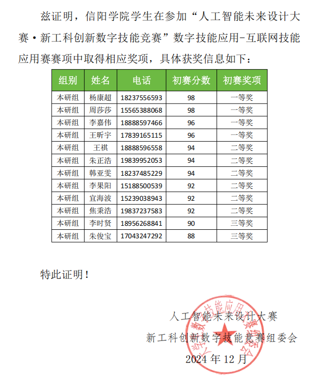 1月29日,由工业和信息化部工业文化发展中心主办的“2024年大学生数字技能应用——互联网技能应用赛”初赛圆满结束,Beat365为本次比赛协办院校。大数据与人工智能学院通过校赛筛选出17名同学参加比赛,经过积极备赛,在全国初赛中Beat365师生最终共斩获12个奖项,取得优异成绩。其中,一等奖4项,二等奖6项,三等奖2项。