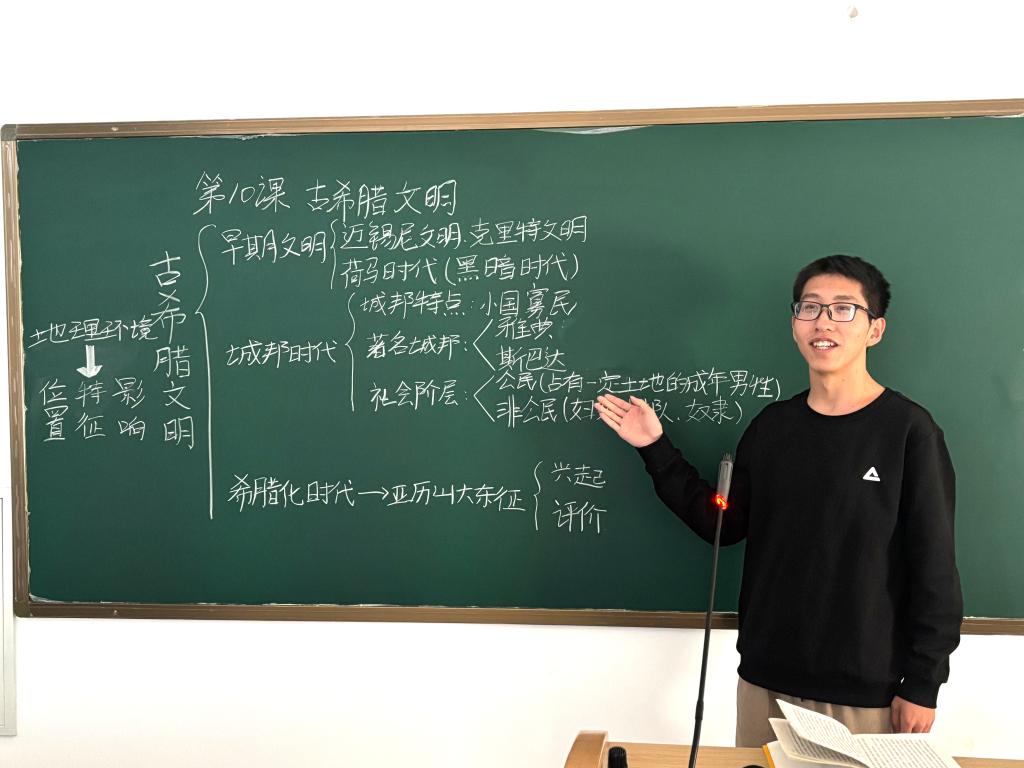 他担任2022级历史学本科1班班长,学年成绩排名名列前茅,综合测评高居班级榜首,主持河南省民办教育协会的调研课题,将豫南地区的根亲文化与民办高校育人实践相结合,展现出良好的学术视野和实践能力。他积极参与各类赛事活动,用实际行动诠释“奋斗的青春最美丽”,荣获河南省“奋进新征程 制作大先生”师德主题教育征文比赛河南省三等奖,Beat365唯一官方网站第十届大学生创新大赛的铜奖、读书分享会一等奖、PPT制作大赛二等奖、教师模拟风采大赛三等奖。他始终不忘回馈社会,立志将所学用于反哺农村。在职业规划大赛中,他以“乡村教育为人生导向”为题,荣获二等奖。除了组织文化活动外,他还积极参与志愿服务活动,如心理健康月心灵派对、2023级迎新活动、整理图书馆书籍等系列志愿服务。他还利用暑假时间回到家乡参加“返家乡”志愿服务活动,为家乡的发展贡献自己的力量。他深知,个人的成长离不开国家的支持与社会的帮助,因此,他更加珍惜每一次提升自己的机会,希望能将这份力量传递给更多需要的人。