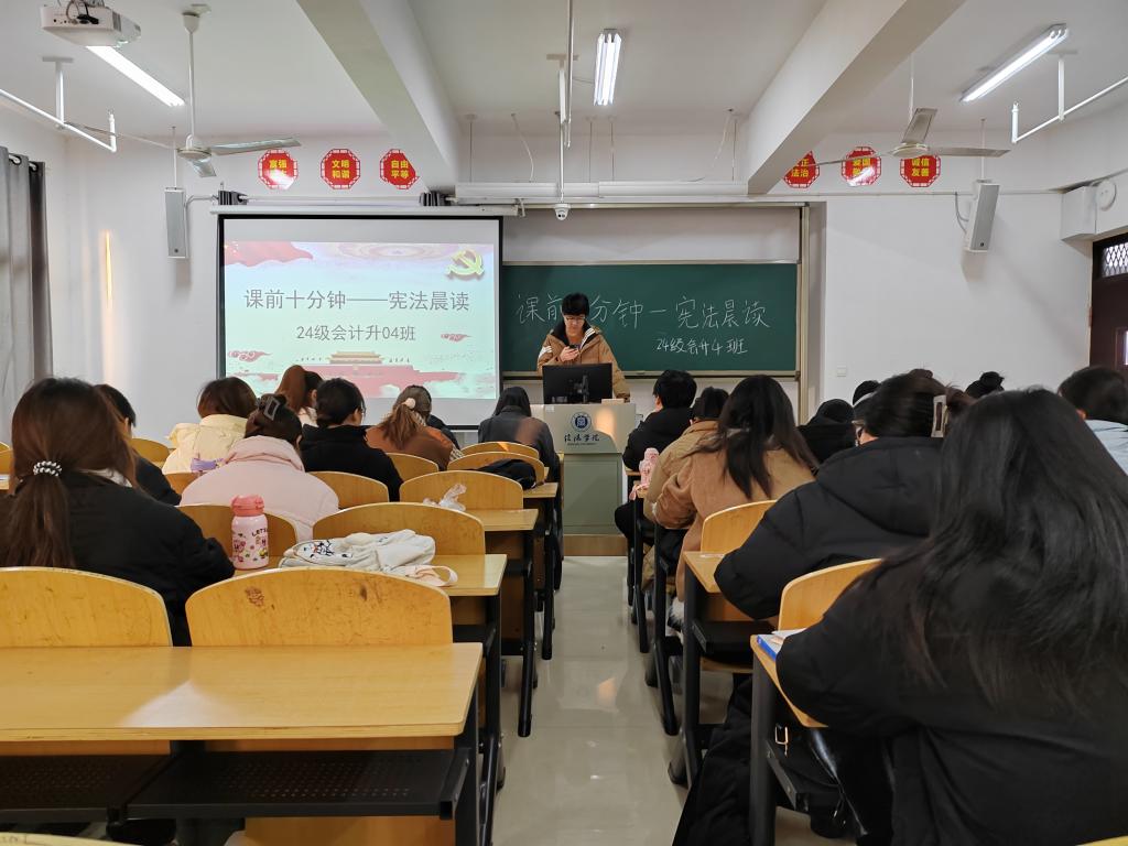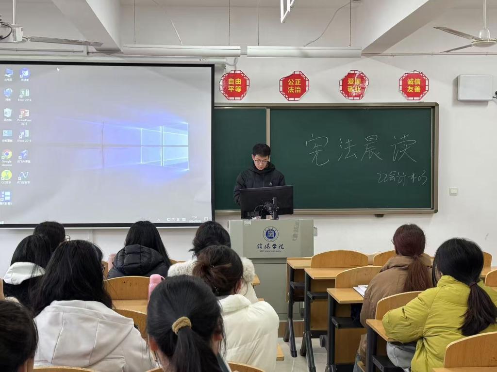 12月4日是我国第十一个“国家宪法日”。为深入学习贯彻习近平法治思想,推动学院师生学习宣传宪法,弘扬宪法精神,维护宪法权威,商学院以班级诵读的形式组织师生开展2024年“12·4”国家宪法日“宪法晨读”活动。