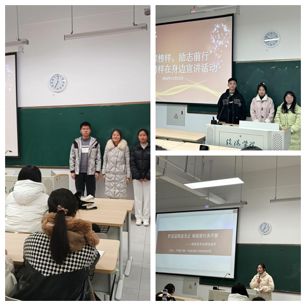 为深化资助育人工作,发挥国家奖学金获奖学生的榜样育人作用,讲好身边的励志故事,营造看榜样、学榜样、做榜样的良好氛围,近日,外国语学院开展了“朋辈榜样,励志前行”励志榜样在身边为主题的先进事迹宣讲活动。活动邀请2024年国家奖学金获得者于芳媛,国家励志奖学金获得者霍新月、陈雅欣、翟晨齐、侯利伟等同学分享学习经验与成长心得。活动由外国语学院学生会学术部部长张露杰主持。