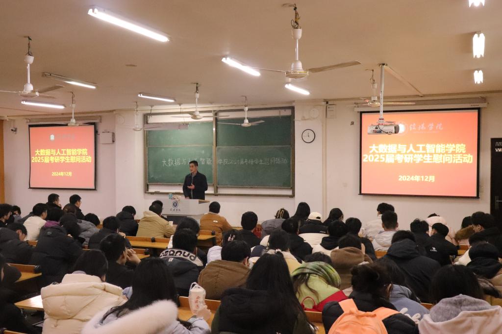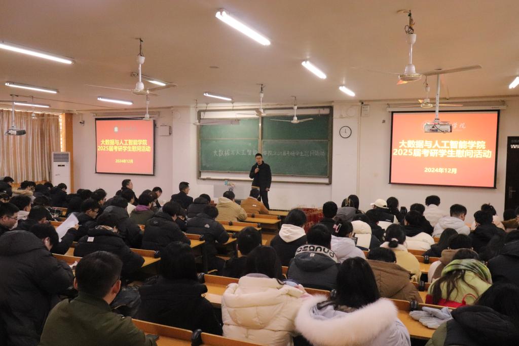 为鼓励2025届考研同学积极迎考,增强信心,舒缓压力,12月13日下午,大数据与人工智能学院在人文楼106开展2025届考研学生慰问活动,院长邬长安、党总支书记郭二军、教学干事徐良、行政干事陈慧、各带班辅导员及2025届考研学生参加,会议由陈慧主持。