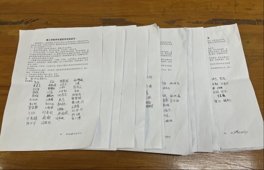 期末考试来临之际,为更好地端正考风,严肃考纪,营造文明、诚信的考试环境,理工学院通过多渠道、多形式开展“诚信考试”主题教育系列活动。