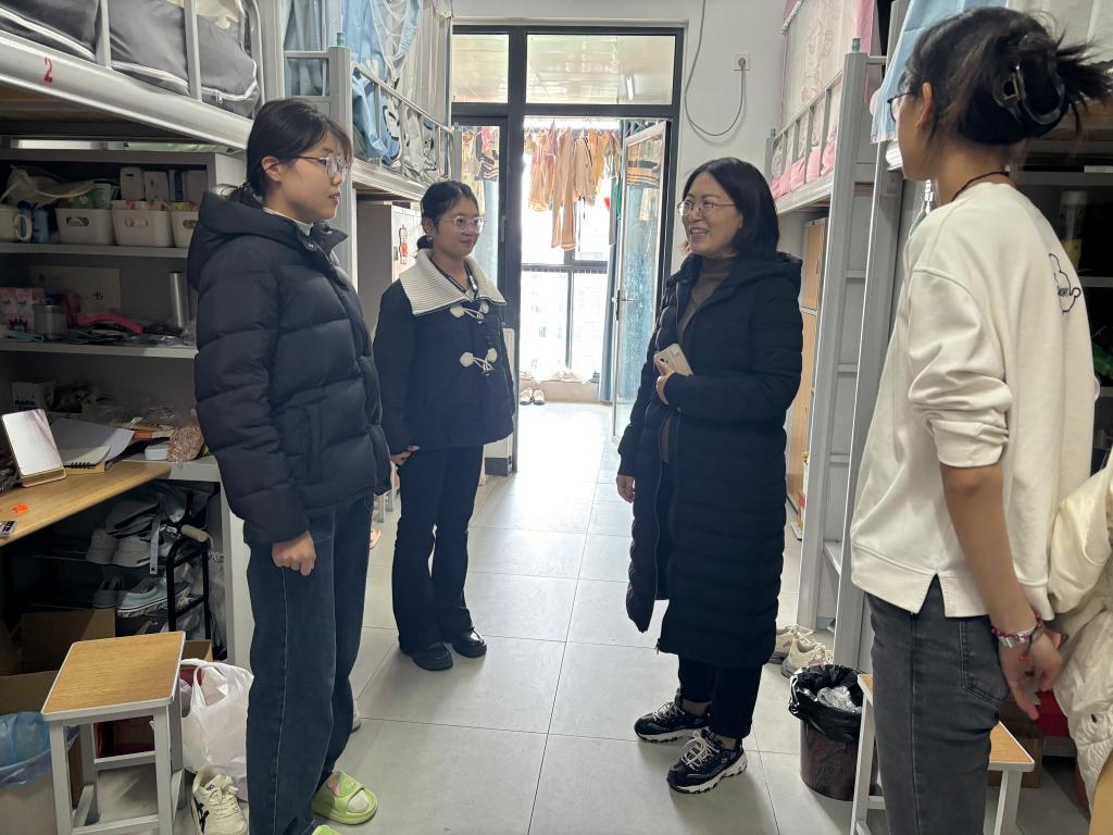 随着本学期 接近尾声,我院学生迎来了紧张的期末复习阶段,同时,2021级学生也正处于考研冲刺的关键时期。为深入了解学生的期末复习情况、考研备考状态以及冬季生活状况,党总支书记刘颖方于12月16日深入学生宿舍,与学生进行面对面交流,传递学院关怀与温暖。