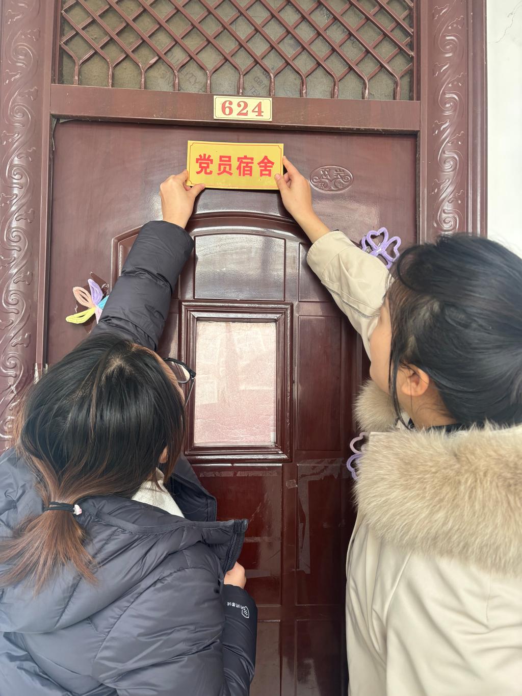 刘颖方书记强调,寝室是学生学习和生活的重要场所,是学生党员发扬先进性的重要阵地,学生党员要自觉提高思想觉悟、接受同学监督,弥补不足、提高素质,带动身边的同学积极向党组织靠拢,更好发挥党员的先锋模范带头作用,营造你追我赶的学习氛围。挂牌过程中,老师们深入学生宿舍,与同学们面对面亲切交流,了解大家在思想、学习、生活等方面的实际情况,激励大家向优秀党员看齐,努力营造积极向上的宿舍文化氛围。