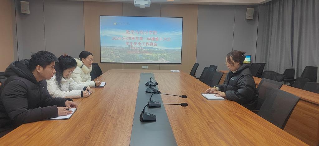 12月26日上午,数学与统计学院在社科楼419会议室2024-2025学年第一学期第十六次学生安全工作研判会,学工干事田媛、全体辅导员参加了会议,本次会议由田媛主持。