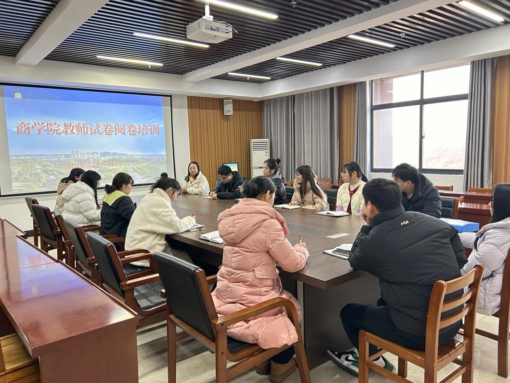 为进一步提升教师教学素养与专业能力,并确保期末阅卷工作的公平性、公正性与严谨性,12月24日下午,商学院在综合楼715会议室召开期末阅卷工作培训会,教学副院长吴新静和青年教师们参加了会议。