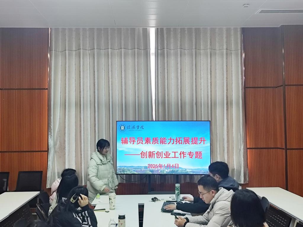 辅导员秦斯雅开展了创新创业工作专题培训。她对创新创业赛事进行了全面的总结汇报,细致地梳理了学院在各类赛事中斩获的佳绩。她介绍了学院的创新创业培训内容,让辅导员们对创新创业知识和技能培训体系有了清晰的认识。最后,她对省内各赛事进行了精心汇总,为辅导员们提供了全面的赛事资讯,鼓励辅导员引导学生有针对性地参与适合的赛事。