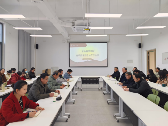 2月16日下午,社会科学学院在南湖校区教二楼509会议室召开了2025年春季学期全体工作会议。会议由院长郭志祥主持,学院班子成员及全体教职工参加会议。