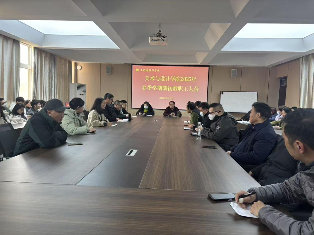 2月16日,美术与设计学院在艺术楼215会议室召开新学期全体教师会议。院长张瑞瑞、党总支书记郑山峰、教学副院长王伟以及全体教师参加了会议。郑山峰主持了会议。