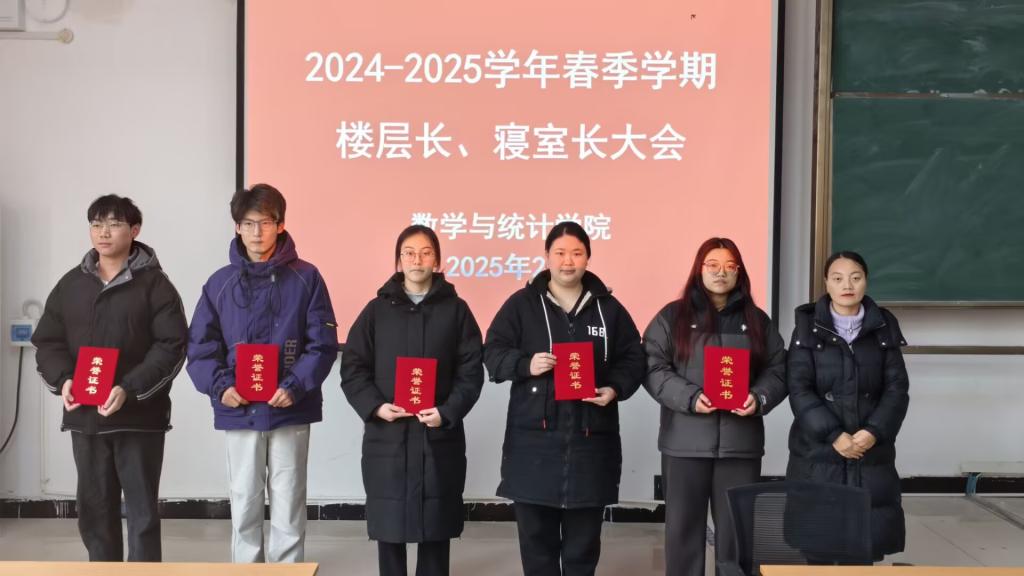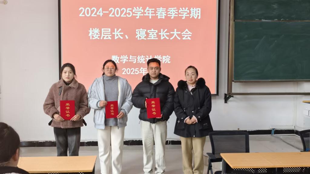 大会伊始,团总支书记胡涛宣读了数学与统计学院2024-2025学年秋季学期公寓管理工作的表彰文件,并详细列出了受表彰名单。