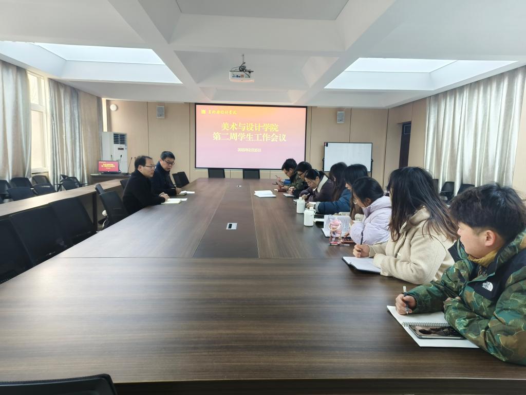 2月25日上午,美术与设计学院在浉河校区艺术楼215会议室召开第二周学生工作会。学院党总支书记郑山峰、学工干事秦金峰和全体辅导员参加会议。会议由学工干事秦金峰主持。
