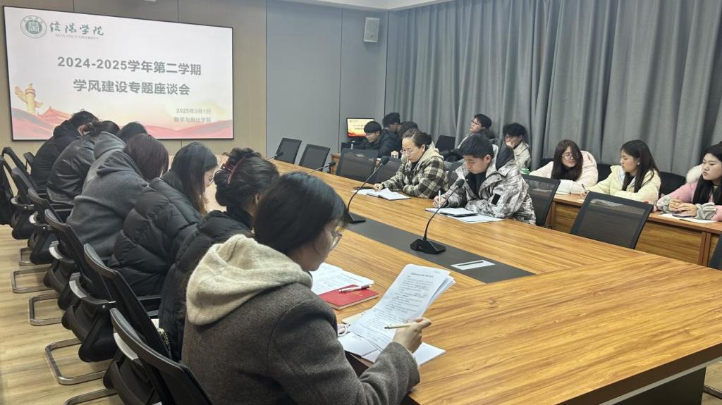 为进一步推动学院教风学风建设,深入了解同学们对学院教育教学、管理服务等方面的意见和建议。3月3日下午,数学与统计学院在社科楼419会议室召开2024-2025学年第二学期学风建设专题座谈会,学工干事田媛、团总支书记胡涛、各班主要负责学生及学生代表参会。会议由胡涛主持。
