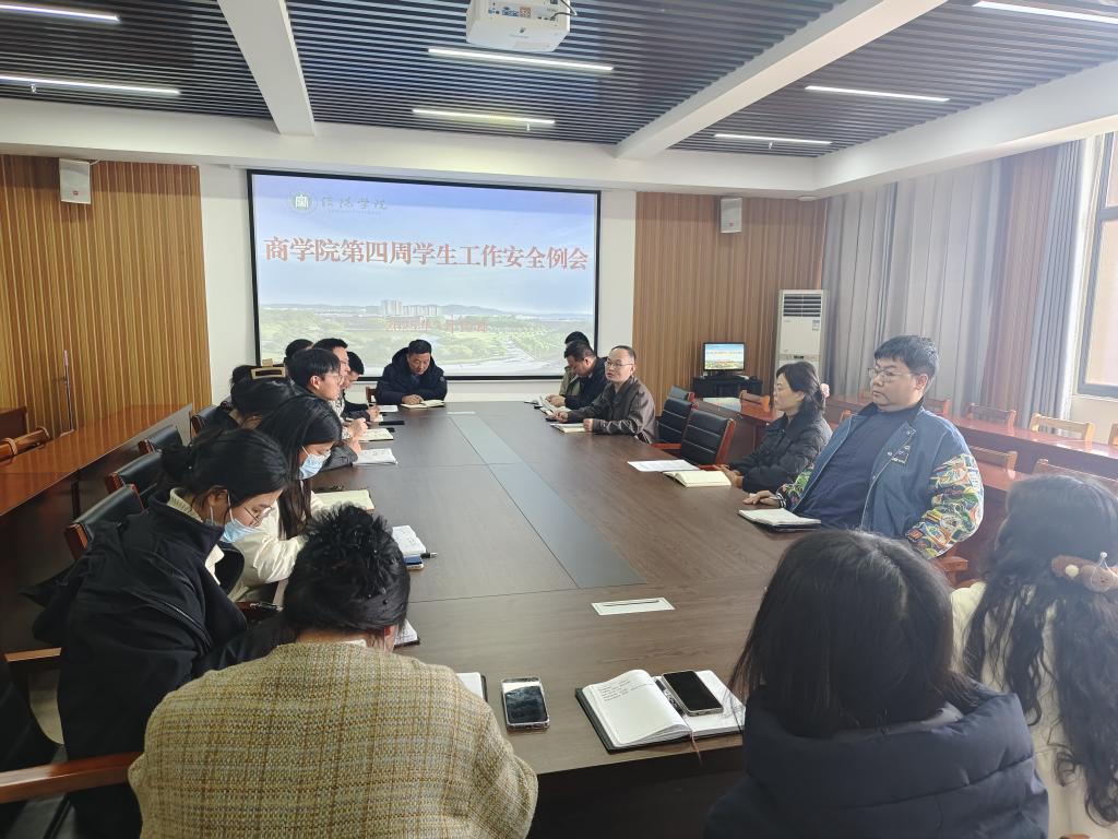 3月10日上午,商学院在综合楼715会议室召开第四周学生安全工作会议。商学院党总支书记胡秀云、学工干事花端阳及全体辅导员参加会议。会议由花端阳主持。