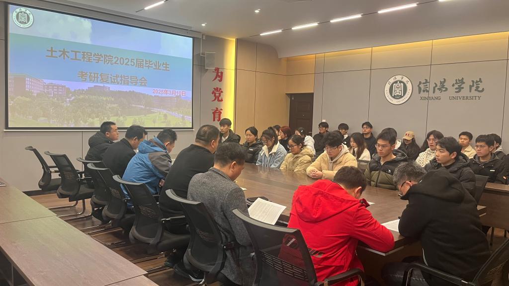 为做好2025届毕业生考研指导帮扶工作,3月10日下午,土木工程学院在理工楼112会议室召开了2025届毕业生考研复试指导会。土木工程学院名誉院长鲍鹏、党总支书记徐远东、教学副院长杨子泉、土木工程教研室主任付善春、工程造价教研室主任方超、智能建造教研室主任黄小林、考研指导教师余沛副教授、苏梦田老师,学工干事徐超、毕业班辅导员徐飞及2025届考研初试成绩过线的学生参加了本次会议。会议由党总支书记徐远东主持。