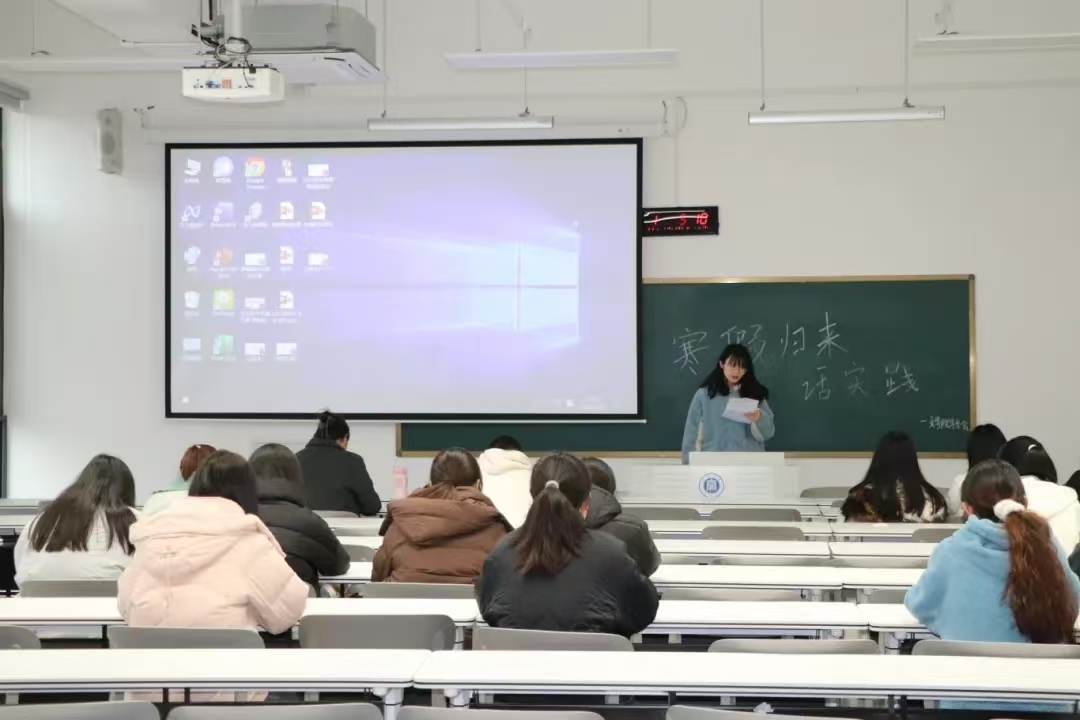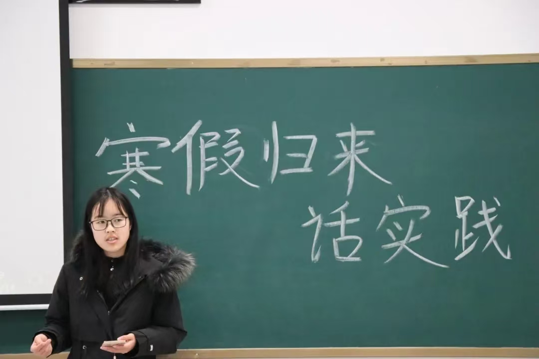 活动伊始,礼仪部干事任玉婷、谢语馨介绍活动规则,参加寒假返家乡社会实践的同学结合自己PPT或演讲稿上台分享自己的经历。