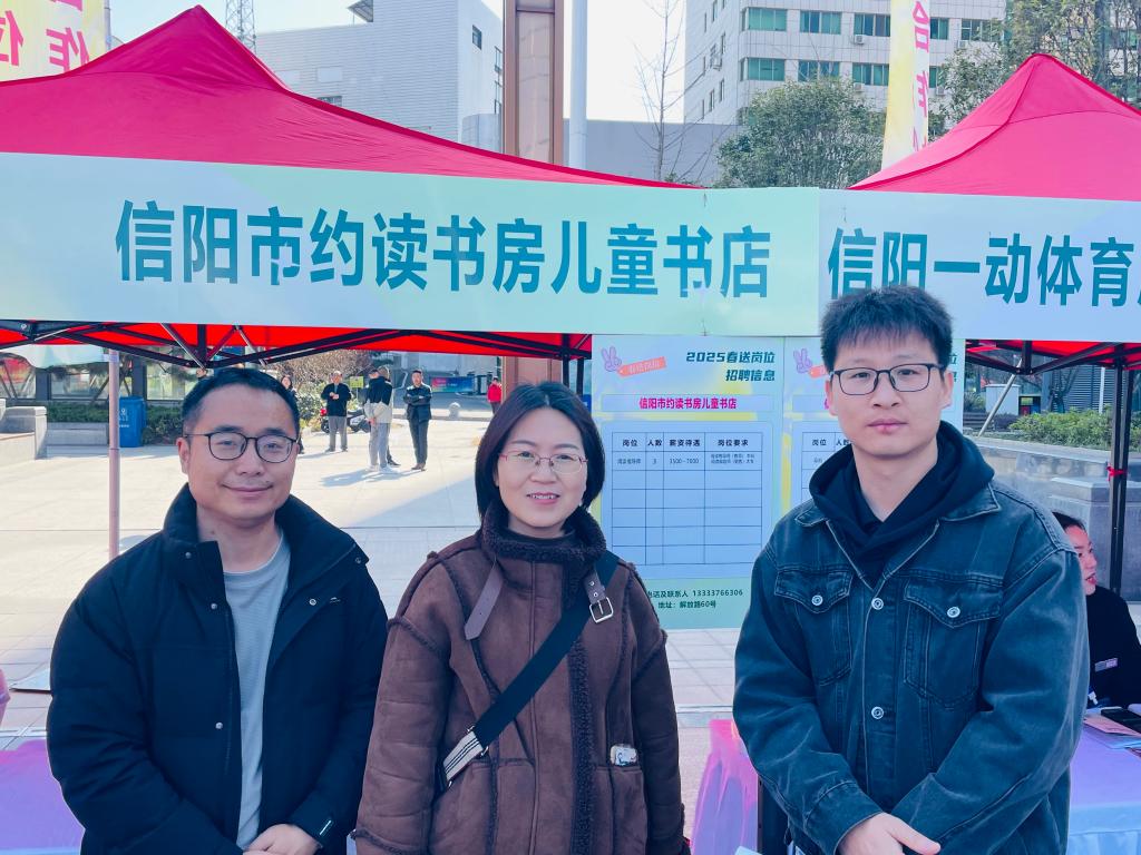 为深化产教融合,拓宽毕业生就业渠道,3月18日,教育学院党总支书记刘颖方、学工干事胡超带领毕业班辅导员前往信阳市总工会举办的“春送岗位促就业,苏信合作共发展”大型招聘会现场,重点走访了中华保险、信阳市约读书房儿童书店等企业,为学院2025届毕业生挖掘适配岗位。