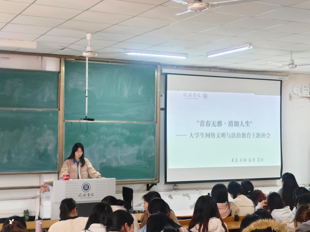 为引导大学生树立健康的网络观念,增强法治意识,共同营造清朗的网络环境,教育学院于3月份组织开展 “青春无邪・清朗人生”网络文明与法治教育主题班会。各班级辅导员主持会议,全体学生积极参与,共同探讨如何科学理性地使用网络,提升网络素养。