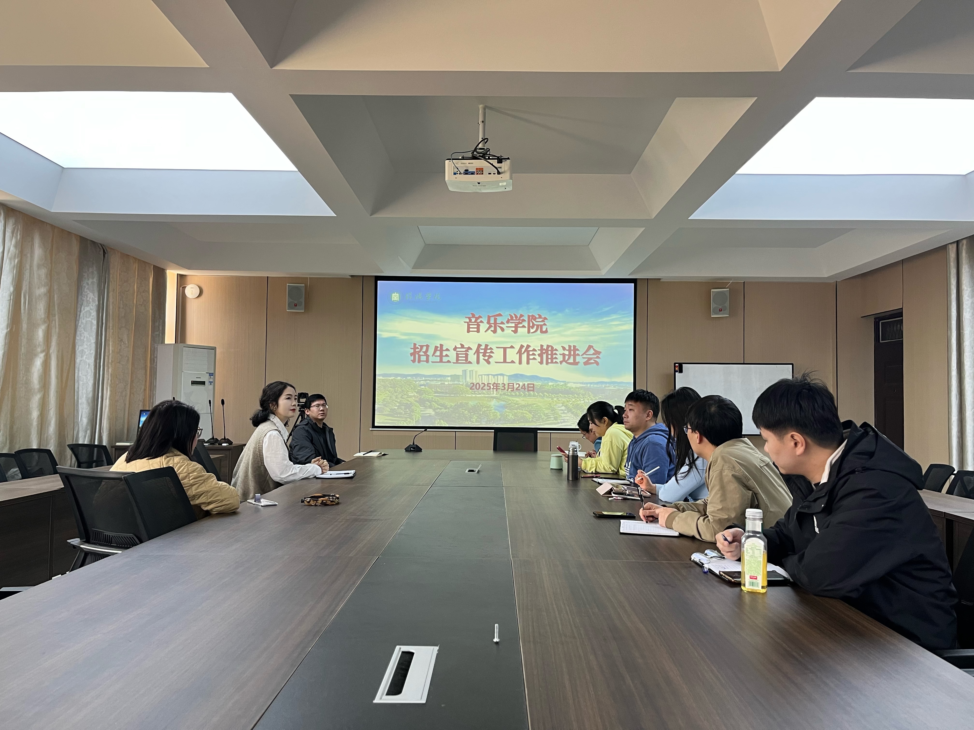 为进一步全面做好2025年招生宣传工作,适应当前面临的招生新形势、新任务,3月24日,音乐学院召开了2025年招生宣传工作推进会。党总支书记郝昊、副院长杨辉及班子成员、各教研室主任及招生直播有关负责教师参加了会议。杨辉主持了会议。
