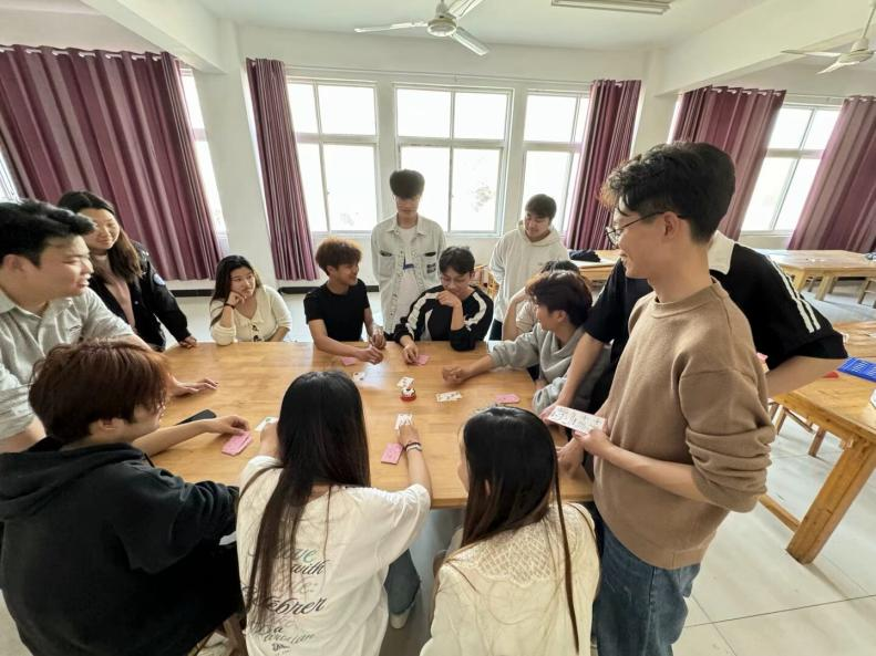 活动伊始,胡晓对大家目前的学习、生活状态等进行了解,分享了一些解压小技巧,希望大家在不开心时合理的倾诉、宣泄,保持好心情。随后此次活动以形式多样的游戏活动展开,现场气氛热烈,同学们积极参与其中。