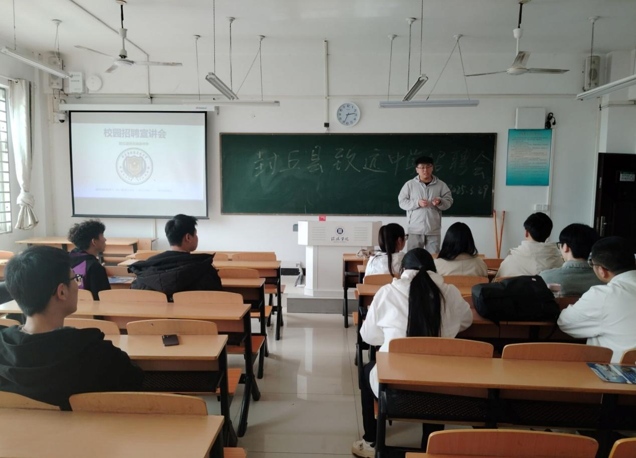 3月29日下午,2025届封丘县致远高级中学专场招聘会在理工楼301教室举行专场招聘宣讲会,学工秘书杨晓杰,毕业班辅导员李英治、甘玉峰以及理工学院近80名2025届毕业生参与了招聘会。