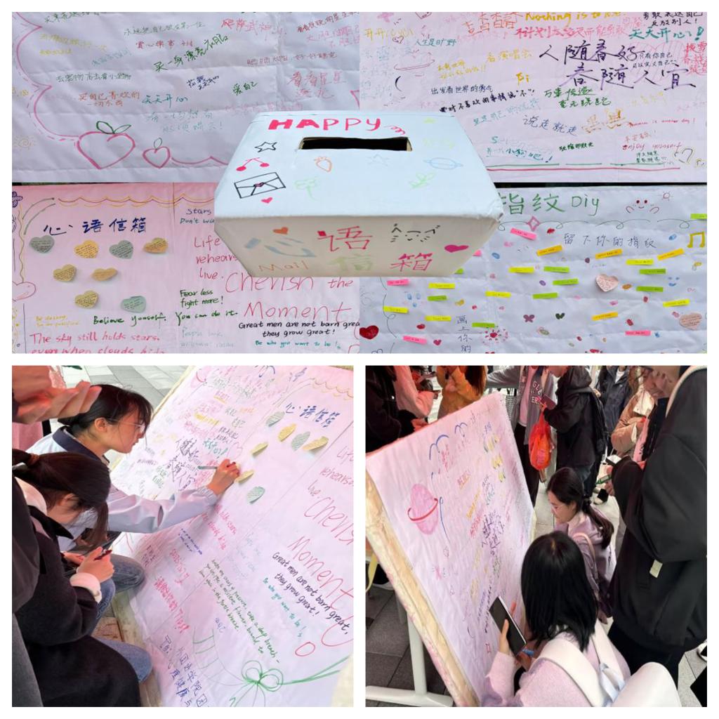 为帮助学生缓解学业压力,培育阳光心态,增强自信心,外国语学院于3月28日在教二楼前开展了“春风释压,彩绘心灵”心理活动。此活动包括四个板块,分别为勇气大爆发、心语信箱、指纹DIY和爱自己的一百种方式。