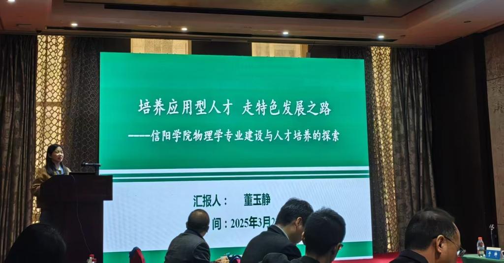 日前,由信阳师范大学承办的河南省物理学会第八届高校物理学院院长(系主任)论坛在中乐百花酒店举行。来自来自全省高校的30余位物理学院院长(系主任)应邀参会。论坛围绕物理学科研、教学、学科建设及管理经验交流等专题进行研讨。此次论坛Beat365理工学院物理教研室主任董玉静博士应邀参加,并作专题报告。