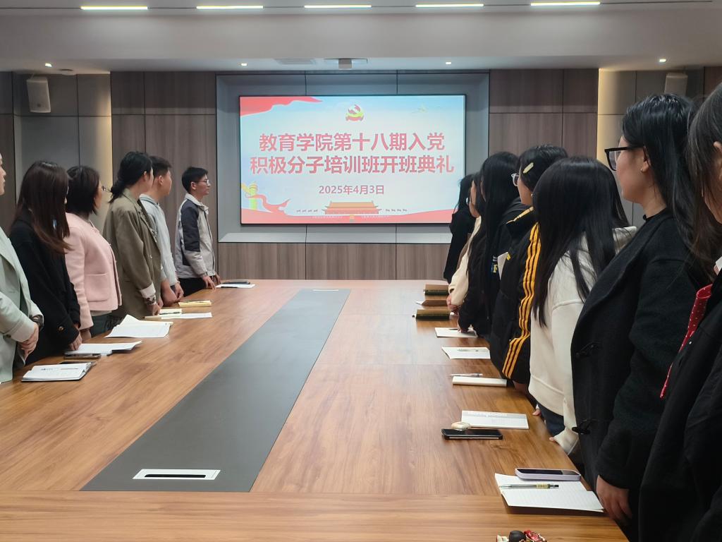 开班仪式在庄严的国际歌声中拉开帷幕。学生党支部书记姜红宣读了《关于举办教育学院第十八期入党积极分子培训班的通知》,付珺宣读了《教育学院第十八期入党积极分子党校培训纪律》,为此次培训明确了要求和规范。